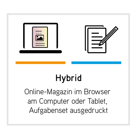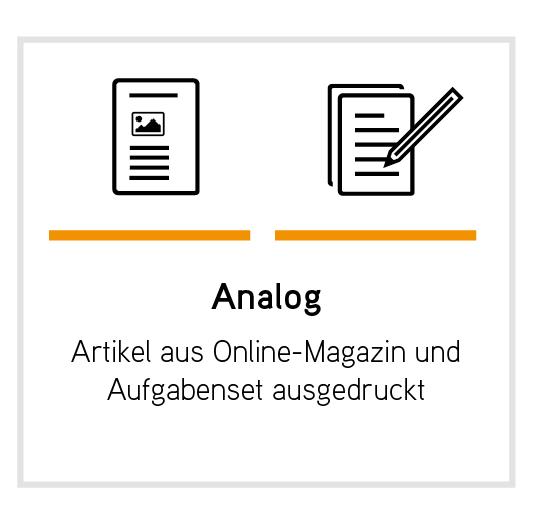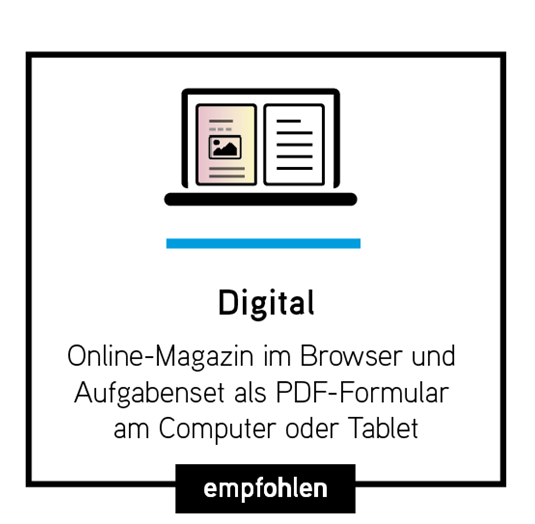 In der Basisversion wird direkt mit Online-Magazin und Aufgabenset in den Unterricht eingestiegen. Das Aufgabenset dient als Leitfaden für die Auseinandersetzung mit dem Magazin und deckt alle Lernziele ab.