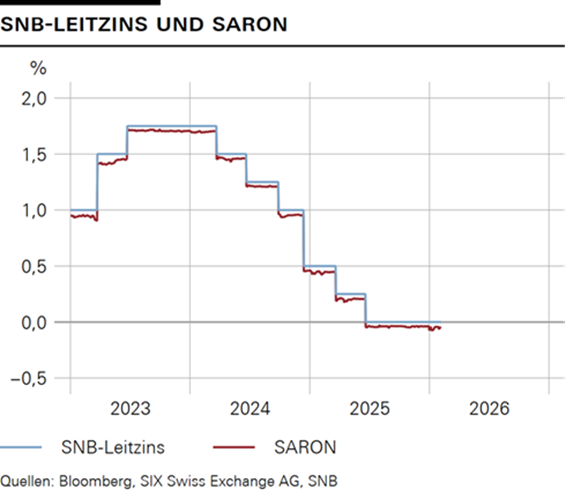 (Das jeweils aktuelle Niveau des SNB-Leitzinses ist in der Rubrik Aktuelle Zinssätze und Devisenkurse auf der Website der Schweizerischen Nationalbank zu finden.)