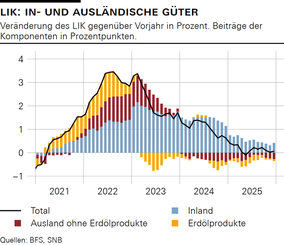 Die Preisstabilität ist aus Sicht der SNB gewährleistet, wenn die Inflation mittelfristig weniger als 2% pro Jahr beträgt. Die Inflation wird mit dem Landesindex der Konsumentenpreise (LIK) gemessen, der das durchschnittliche Preisniveau für Konsumgüter von privaten Haushalten erfasst. Solange dieses Preisniveau jährlich um höchstens 2% steigt, gilt das Ziel stabiler Preise als erfüllt. Steigen die Preise hingegen längerfristig um mehr als 2% (Inflation) oder sinken sie stetig (Deflation), würde dies zu unerwünscht grossen Veränderungen in der Kaufkraft des Geldes führen. Dauerhafte Deflation verletzt das Ziel der Preisstabilität also ebenfalls.