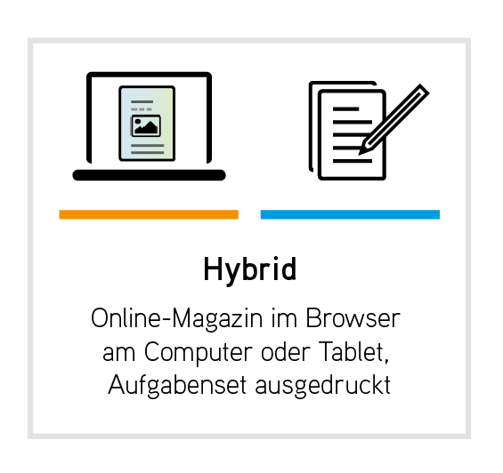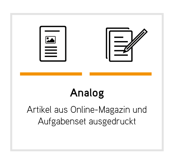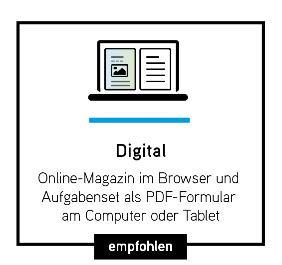 Wir empfehlen, direkt mit Online-Magazin und Aufgabenset in den Unterricht einzusteigen. Das Aufgabenset dient dabei als Leitfaden für die Auseinandersetzung mit dem Magazin und deckt alle Lernziele ab.