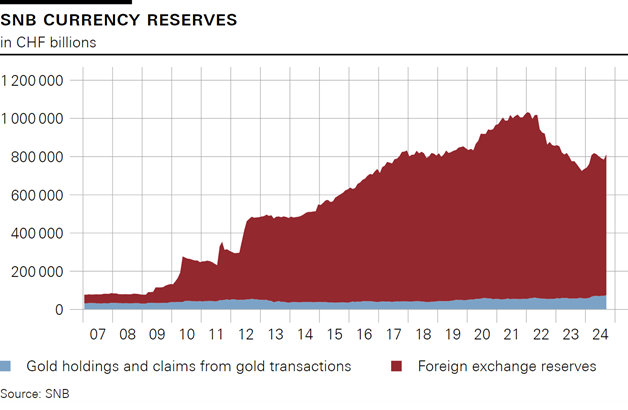 Besides setting the policy rate, the SNB may, if necessary, continue to use additional monetary policy measures to influence the exchange rate or interest rate level. This includes the foreign currency sales in the context of the foreign exchange market interventions after the COVID-19 pandemic. Chart 7 shows how foreign exchange reserves have declined since the beginning of 2022.