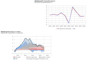 Au 4e trimestre 2024, la croissance a été portée dans une même mesure par le secteur industriel et le secteur des services. Dans le secteur industriel, la croissance s’est essentiellement concentrée sur l’industrie chimique et pharmaceutique, qui a également été à l’origine d’une forte hausse des exportations de marchandises. Dans le secteur des services, la croissance a été largement étayée, même si, dans l’ensemble, elle n’a été « que » modérée.
